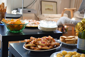 Barnen nöjer sig som sagt med glass, men om du orkar så kan det vara trevligt (och höja ditt anseende något om du liksom jag går omkring i lite för korta kjolar ibland) att duka fram en god äppelkaka eller liknande till föräldrarna. De som stannar alltså.